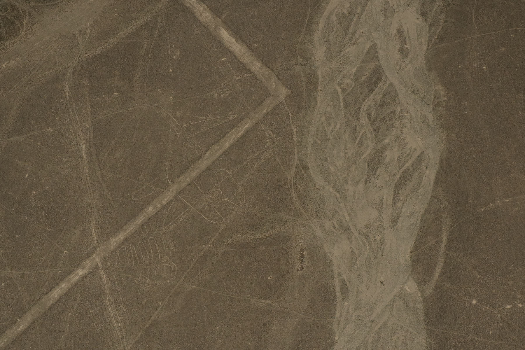 The whale at the Nazca Lines. Clear enough thanks to altitude and the direction of light. Click to enlarge