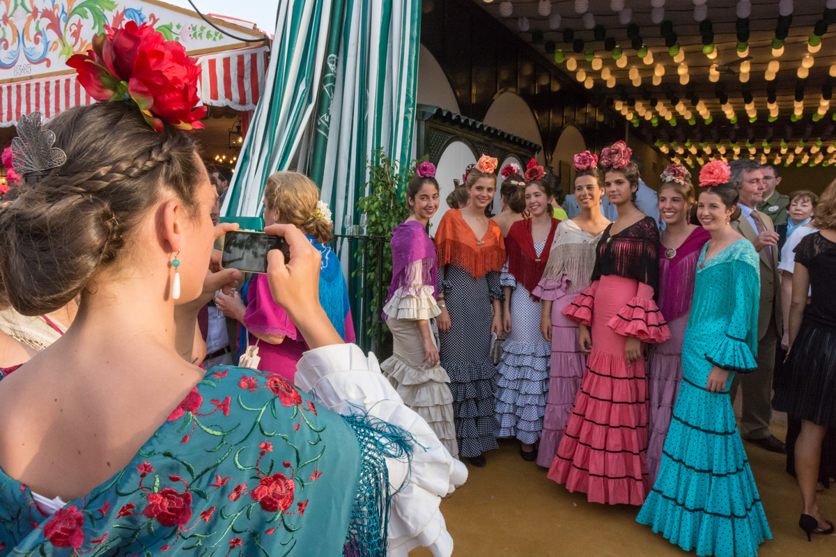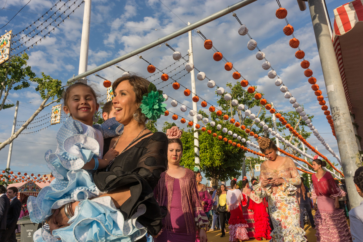 What is the Seville Fair like? It’s a photographer’s paradise! Picture a very large fair in which nearly every woman is wearing a traditional and colorful Flamenco dress, and men wear a spring suit. The wealthiest people enter the Fair on a luxury horse carriage, and everyone parties all night long.