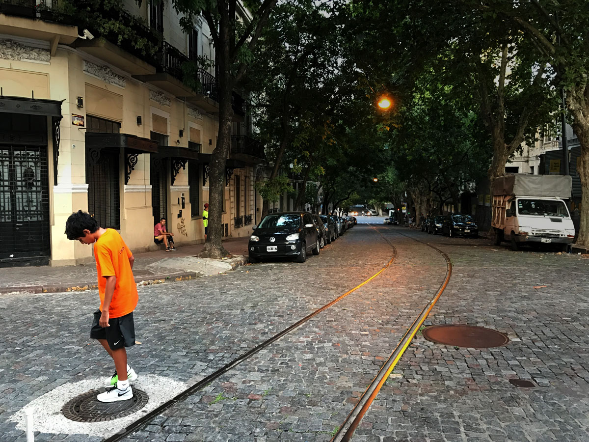 Very nice series. In the last photo I like how the color on the tracks matches the color in his shirt. How are you processing your iPhone photos?
